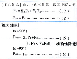 这时,则将实际负荷换算成通过轴承中心,且大小和方向一定的假想负荷来进行分析比较,轴承在假想负荷下具有与实际负荷和转速下相同的寿命。